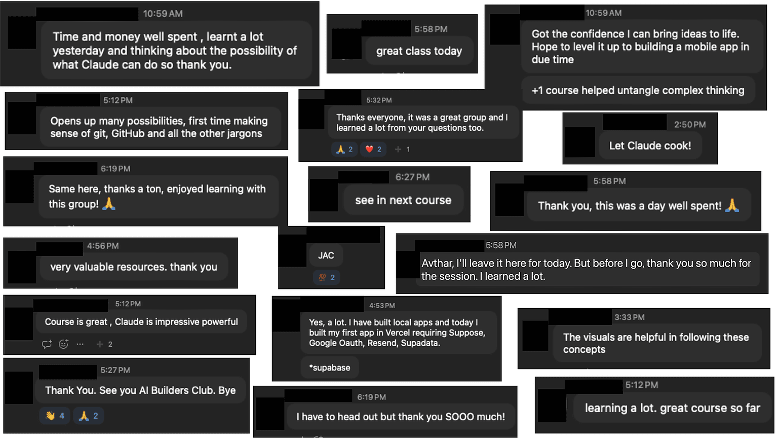 5 hours of hands on time to build with Claude Code, split into 5 mini-projects. Plus live help to get you unstuck when you run into issues.