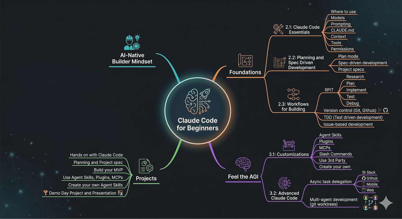 Exposure to advanced Claude Code features and workflows like Skills, MCPs and Plugins, async usage, and multi-agent development.