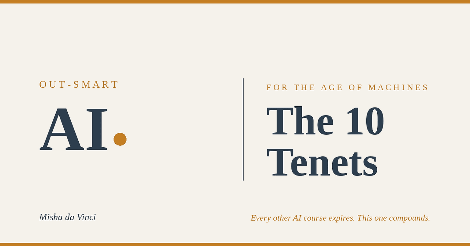 Why ideas people win, why most AI courses waste your time, and what actually compounds. Ten tenets. Free.