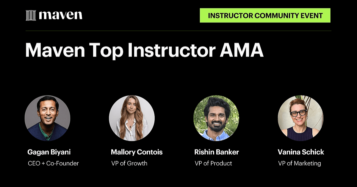We're trying something new this year for our instructor town hall. You're one of our top instructors so we'd love to invite you to two events - our Q4 town hall (for all Maven instructors) and an exclusive, invite-only Q&A session with Gagan and the leadership team. Here, you can ask more advanced questions and hear from other instructors' experiences.