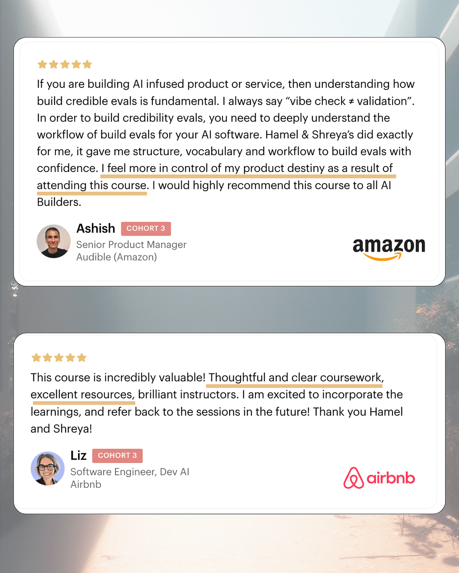 Learn directly from Hamel Husain & Shreya Shankar in a real-time, interactive format.