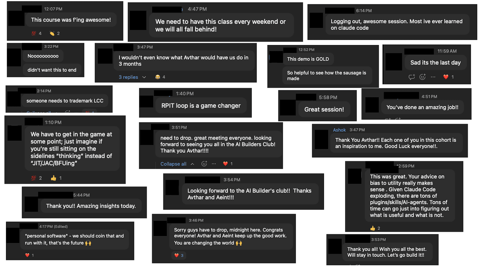 10+ hours of office hours and Q+A with Avthar for personalized help on your projects, debugging help, and specific questions about building with AI. Plus a Slack community for async help from instructors and cohort peers.