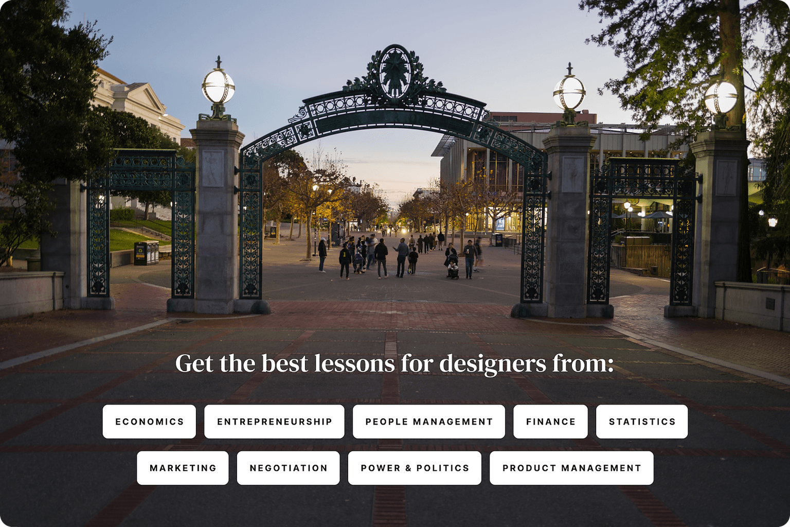 As a busy designer, you don't have time for fluff. In just five highly-efficient 90-minute lectures, get everything you need to know to confidently be a more strategic product designer (or even step into the PM role, yourself).